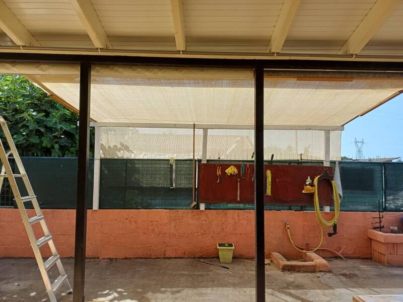 Ook de tent van schaduw doek voor de veranda is weer geplaatst.