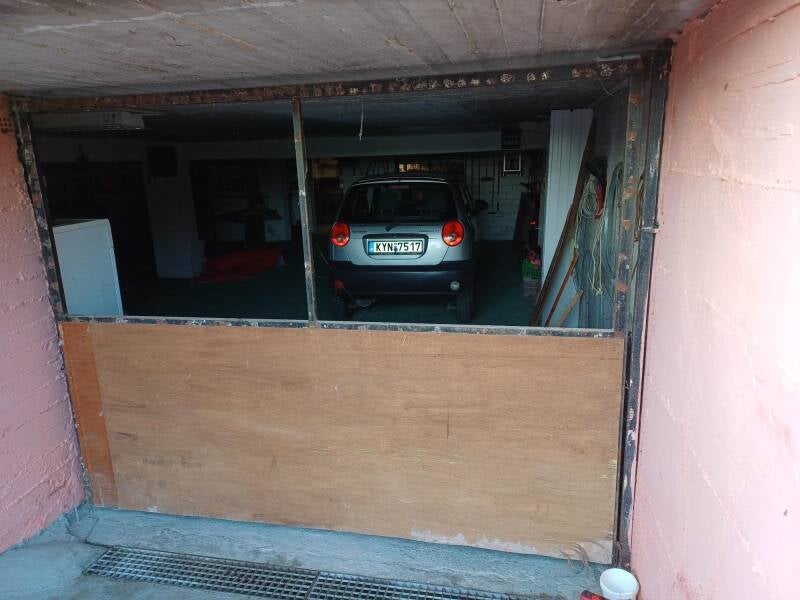 Dus de triplex platen er af gehaald, jah toen was de deur helemaal open en dacht ik, ik ga maar verder met de ijzeren platen, Wies heeft ff mee gekeken hoe de eerste plaat moest worden geslepen, dat verliep goed en gelijk er maar op gemonteerd (pop nagels gebruikt) ik moet volgendeweek enkel nog het midden plaatje slijpen en dan nog een kleur bepalen om de 2 deuren daar beneden te verven.
