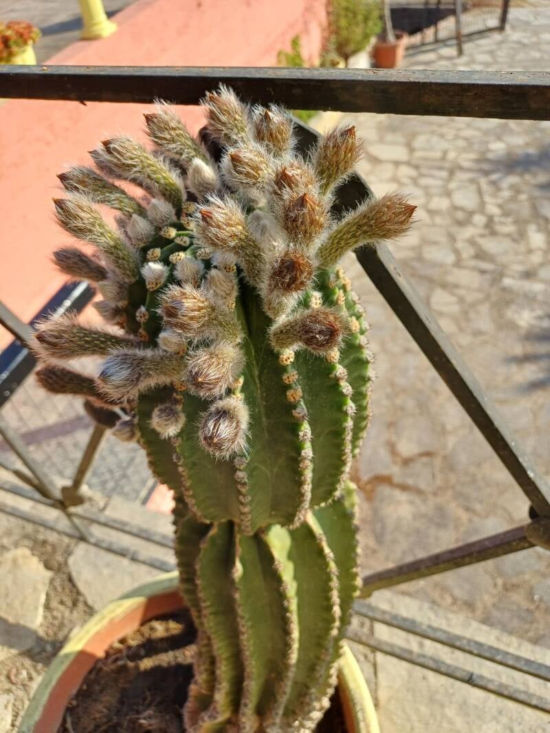 Bij kamer 4 de buitenboel min 30 bloemen op de cactus in bastatica gegeten